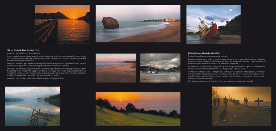 La exposición se titula «Colores de la costa/Kostako koloreak» y cuenta con 12 fotografías a gran tamaño de las costas gipuzkoana y labortana. Conociendo a Carlos diría que habrá mimado hasta el último detalle de la presentación de las mismas.