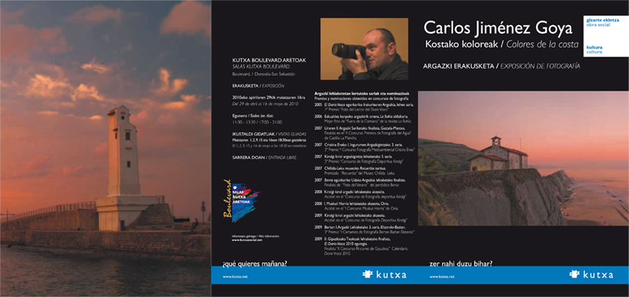 Entre el próximo jueves 29 de abril y el 16 de mayo los aficionados a la fotografía podremos disfrutar de la exposición de mi amigo Carlos Jiménez Goya en la capital Gipuzkoana.